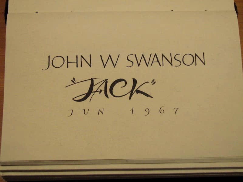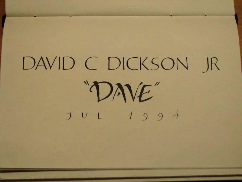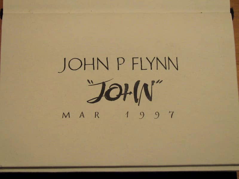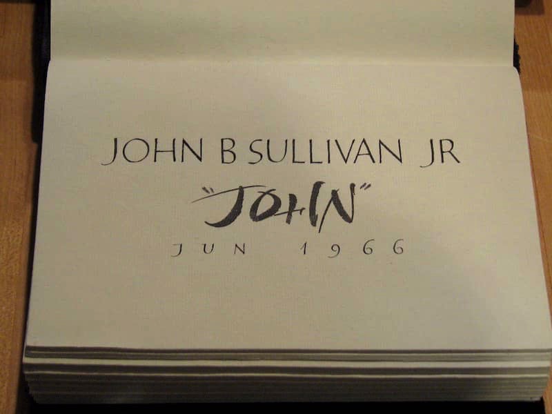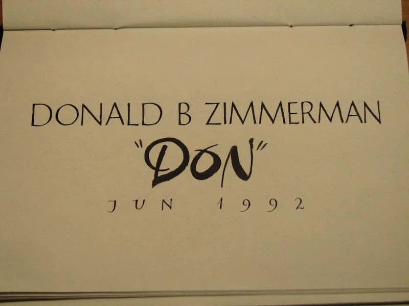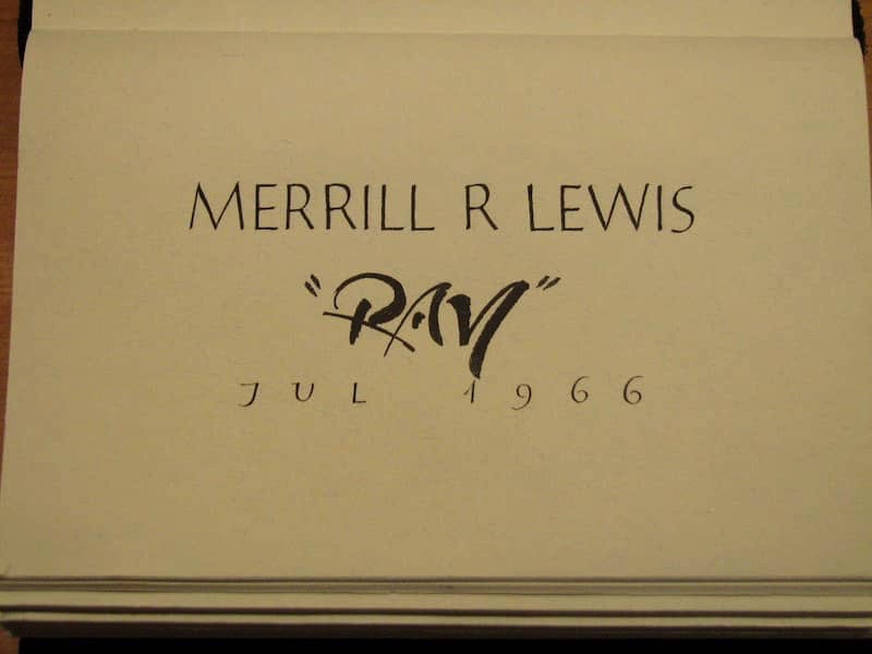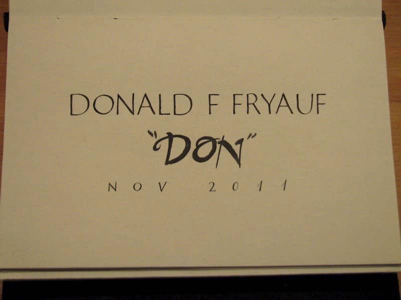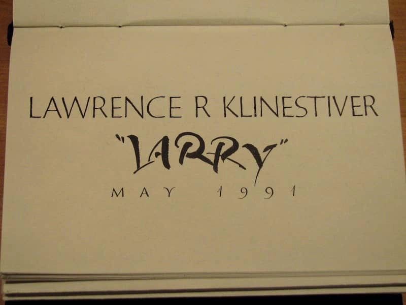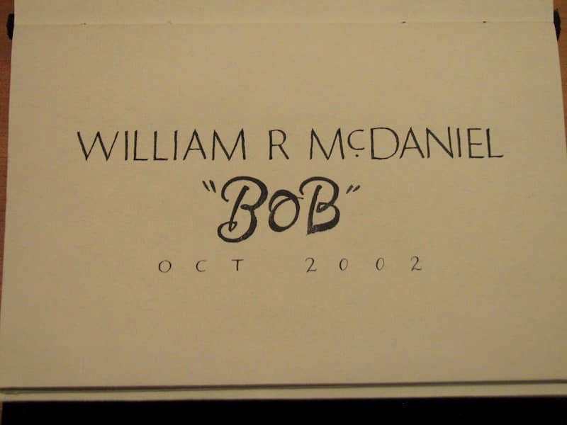 This Journal contains the names of known deceased 34th TFS F-105 pilots, starting with those who were lost in 1966 and coming forward to those who have passed away in peacetime. Each is honored with the dignity of a separate page in this hand-made, leather-bound, field journal beautifully crafted by an amazingly talented calligrapher. Both the journal and the custom-made walnut case that protects it are a fitting tribute to these warriors.