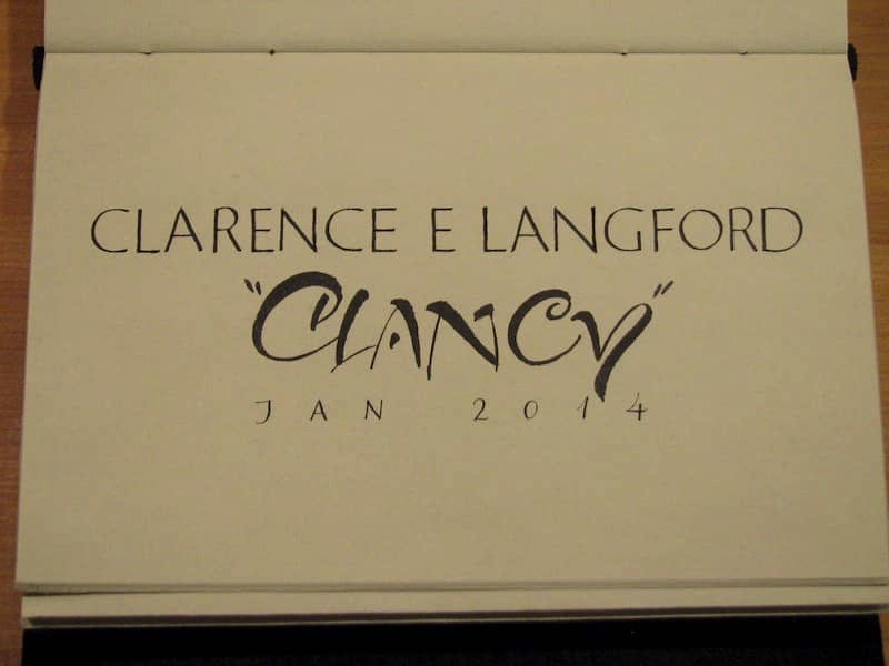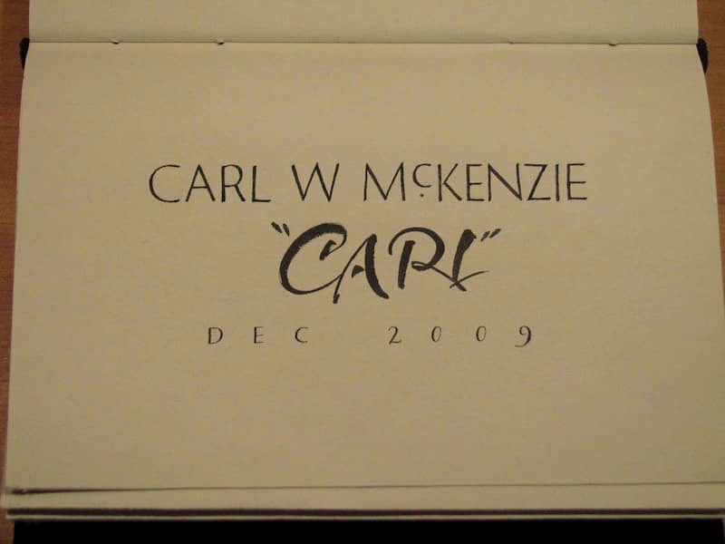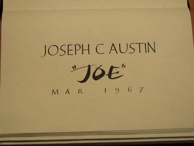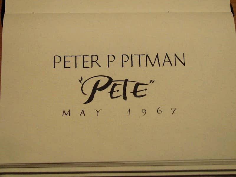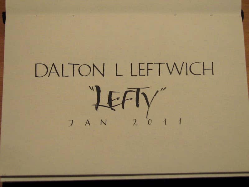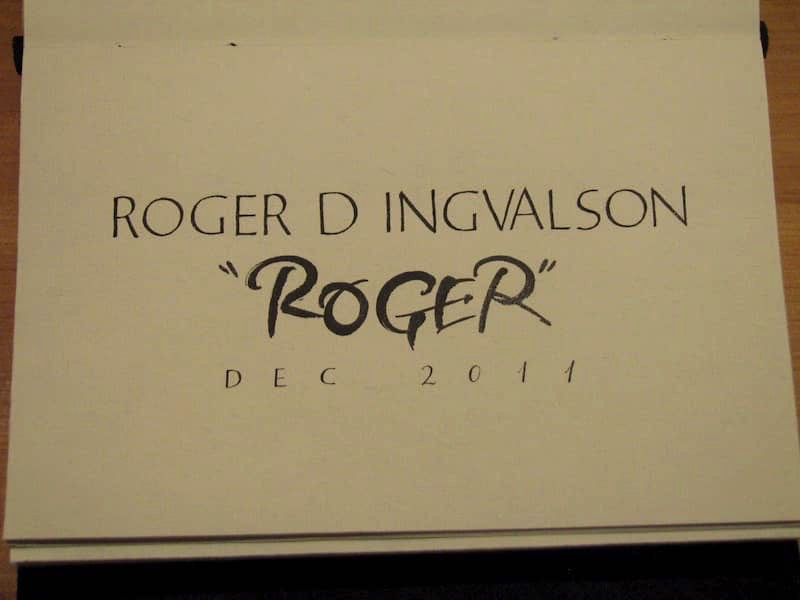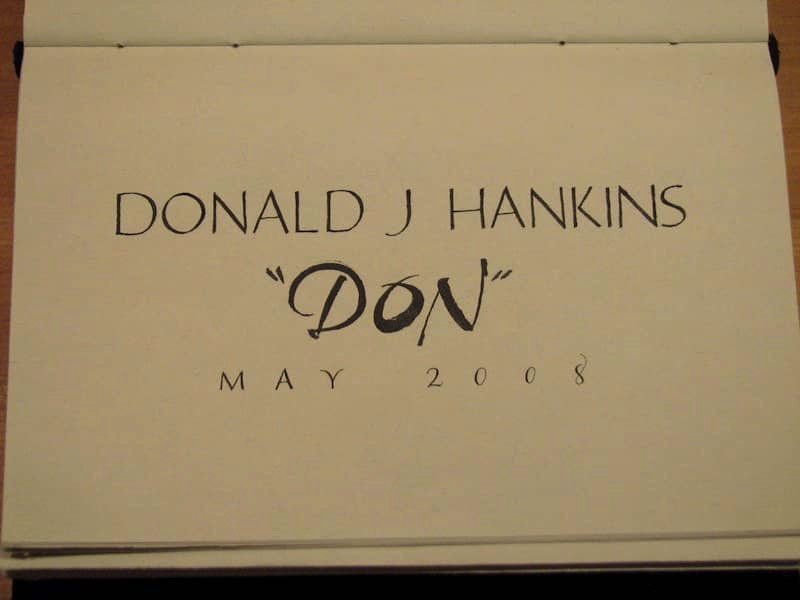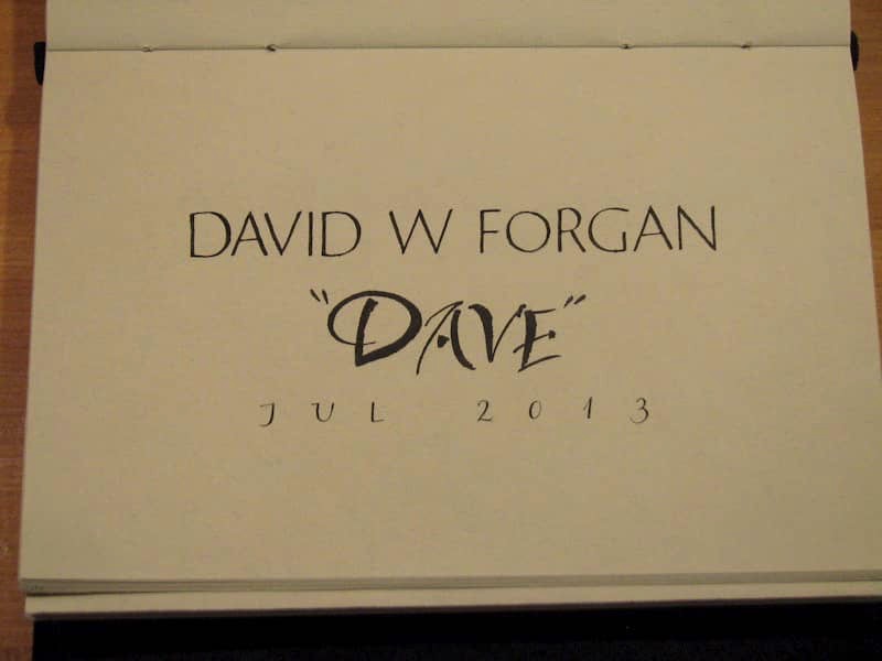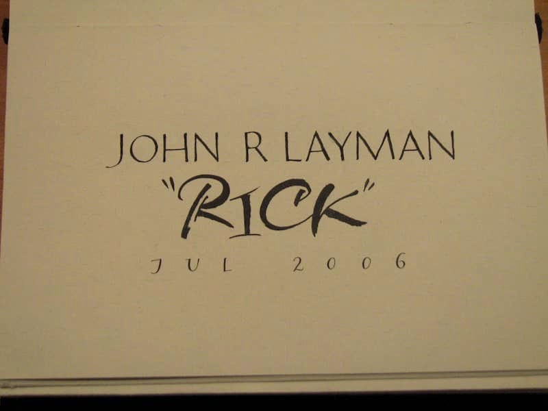 This Journal contains the names of known deceased 34th TFS F-105 pilots, starting with those who were lost in 1966 and coming forward to those who have passed away in peacetime. Each is honored with the dignity of a separate page in this hand-made, leather-bound, field journal beautifully crafted by an amazingly talented calligrapher. Both the journal and the custom-made walnut case that protects it are a fitting tribute to these warriors.