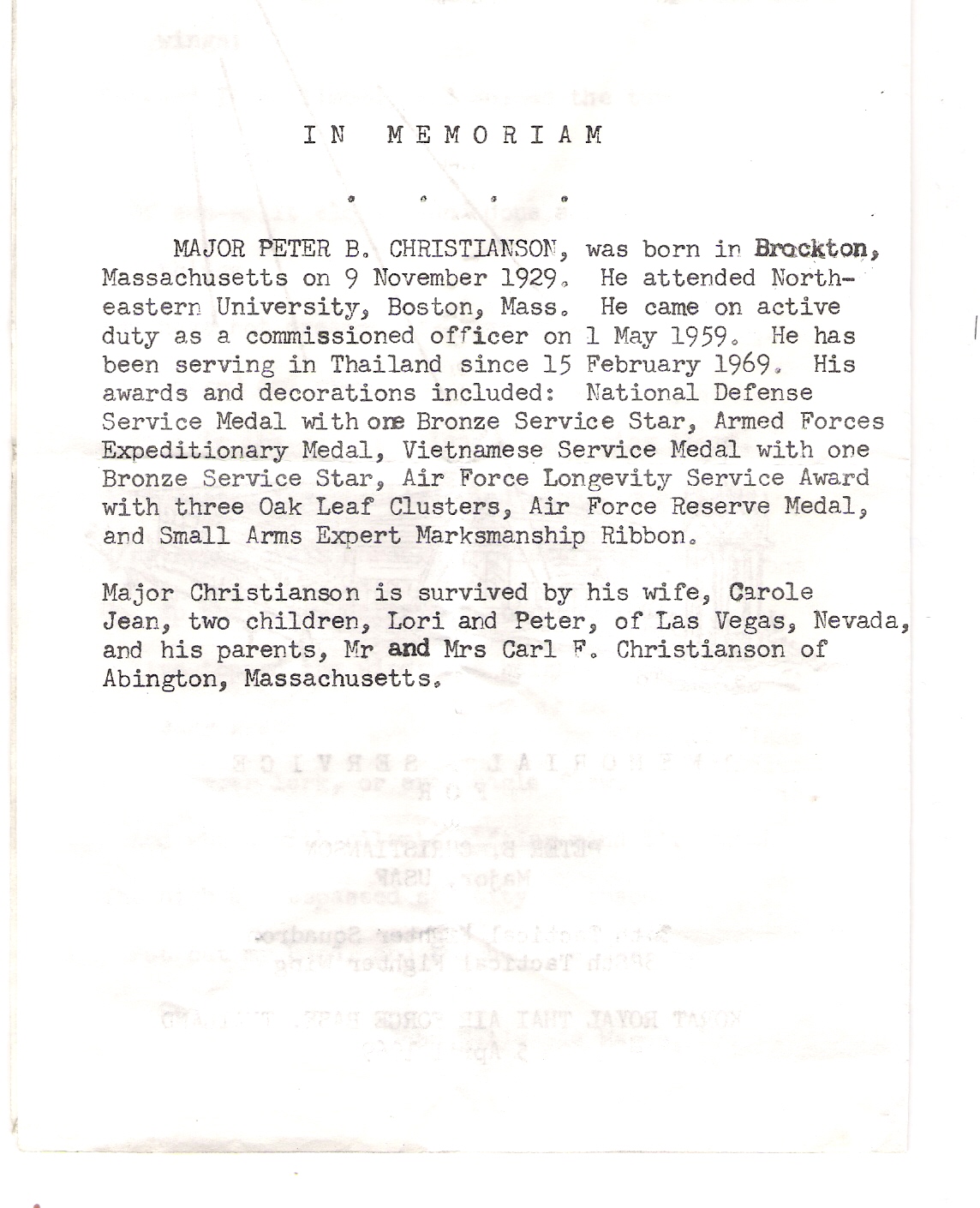 I contacted the USAF Personnel Dept. and requested his records. They sent me everything that was available, including his accident investigation report, which was heavily redacted. It was incredible seeing copies of his handwriting for the first time and learning so much about the history of his career with the Air Force.
