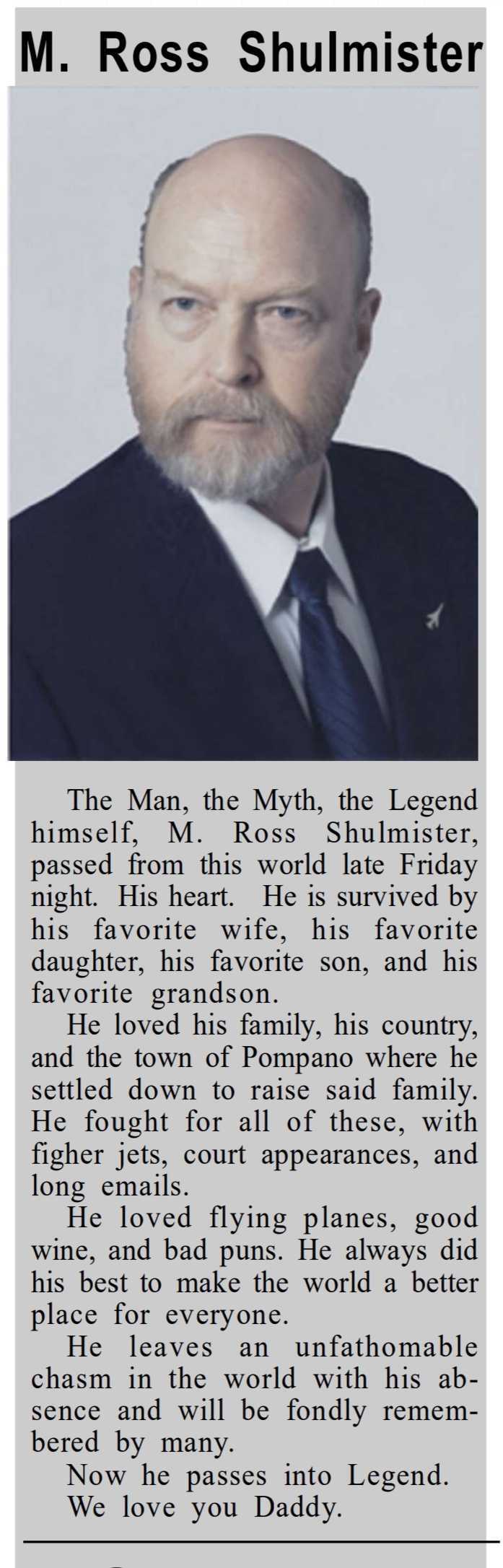Frank died on October 19, 2003. His obituary is included in the F-105 history.